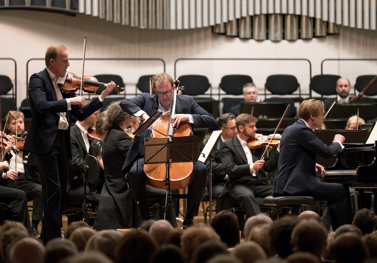 Koncom 18. storočia bolo bežným komorným obsadením trio – klavír, husle, violončelo, na ktorej bol atraktívny najmä klavír ako nový hudobný nástroj postupne nahrádzajúci čembalo. Tak isto Beethoven si zvolil tri klavírne triá ako svoj opus 1 (vydané v roku 1795), sám skladateľ bol virtuóznym klaviristom. O niekoľko rokov neskôr sa ku klavírnemu triu vrátil, no tentoraz bolo vo forme kolektívneho sólistu koncertu. Trojkoncert je dnes uvádzaný skôr raritne ako často, o to bolo jeho uvedenie efektnejšie a vítané. Orchester v introdukcii presvedčil, hral s vyváženým zvukom a kontrastnou dynamikou, melodické línie boli pekne vyspievané. Pri prvom sóle violončela, tému ktorého prebrali čisté husle, sa dali badať nedostatky v intonácii violončela (rovnako tak sa vyskytli aj v ďalších častiach). Tie by sme mohli dať na vedľajšiu koľaj, ak by neboli také markantné a časté. Toto trio však bolo zaujímavé súhrou a muzicírovaním. Istota, s akou si medzi sebou hudobníci odovzdávali frázy, ich plynulosť, prirodzená muzikalita a zohratosť, zmysel pre kantabilnosť a precíznu rytmiku, bola fascinujúca. A keď sa pripojil s tým istým motívom klavír, boli hráči v dokonalom súlade. Hráči zvolili vyváženú, klasicistickú interpretáciu, nechýbali však lyrické momenty v spevných úsekoch. So zvoľňovaním temp to nepreháňali – vždy sa pohybovali vo vyváženej, kultivovanej interpretácii. Klaviristove trilky boli súmerné, krásne vyvážené, staccata neinterpretoval ostro (čo ma asi najviac dokáže vyrušiť), trioly prirodzené, virtuózne prvky bezchybné, jeho sólové party boli pre mňa najpresvedčivejším zážitkom aj preto, že citlivo pracoval s agogikou.