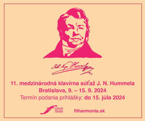 Už v septembri sa v Slovenskej filharmónii uskutoční 11. medzinárodná klavírna súťaž Johanna Nepomuka Hummela. Prihlásiť sa môžete do 15. júla 2024! Od pondelka 9. do nedele 15. septembra 2024 sa v Slovenskej filharmónii v Bratislave uskutoční 11. ročník medzinárodnej klavírnej súťaže Johanna Ne...
