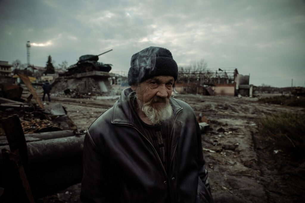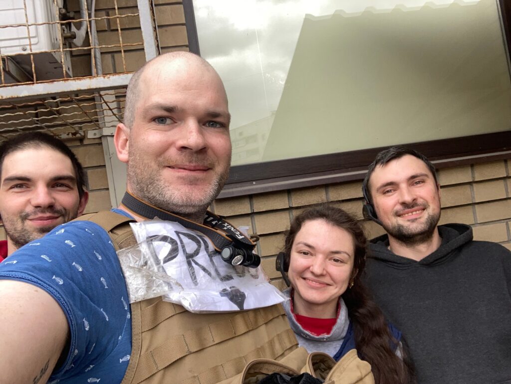 Je to na trochu dlhšie rozprávanie. 24. februára, v prvý deň vojny, som sa vybral na Ukrajinu a trvalo mi asi týždeň, kým som sa dostal do Kyjeva. Hlavne preto, že som sa neustále snažil byť s niekým, nechcel som byť sám. V Kyjeve som bol s jednou ukrajinskou skupinou, ktorú som poznal už dlhšie. S nimi som sa rozišiel, pretože si vôbec neuvedomovali, aké nebezpečné to vtedy v meste bolo. Vyhodnotil som to ako bezpečnostné riziko a radšej sa od nich odpojil. Rozhodli sa totiž bývať v byte hneď za irpinským lesom z kyjevskej strany v deň, keď kadyrovci zabrali väčšinu Irpine. Bývali sme na deviatom poschodí, neskutočne to tam plieskalo, bola to najhoršia noc v mojom živote. Hneď na to som sa pridal k českému fotografovi Standovi Krupařovi, ktorý mal k dispozícii bezpečnejší byt v centre mesta. K nám sa potom pridal Tomáš Vlach a vytvorili sme trojicu, s ktorou sme prešli skoro celú Ukrajinu. Veľmi dôležití sú spoločníci. Dobré je, keď človek vie, že rozhodnutia, ktoré robí, má s kým prediskutovať a nie je to celé iba na ňom. Najťažšie to bolo v Chersone. Bolo to čerstvo oslobodené mesto. Žiadnemu z mojich kamarátov táto cesta nevyhovovala. Vtedy to bolo jediný raz počas nakrúcania, kedy som bol sám.