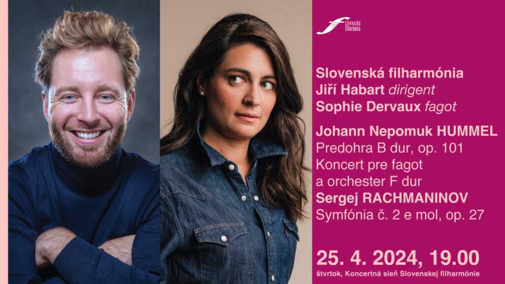 Orchester Slovenská filharmónia sa predstaví vo štvrtok 25. apríla o 19.00 pod taktovkou Jiřího Habarta, ktorý patrí k najmladšej generácii českých dirigentov. Sólistkou večera bude mladá francúzska umelkyňa Sophie Dervaux, prvá fagotistka Viedenských filharmonikov. Na programe zaznejú diela Johan...