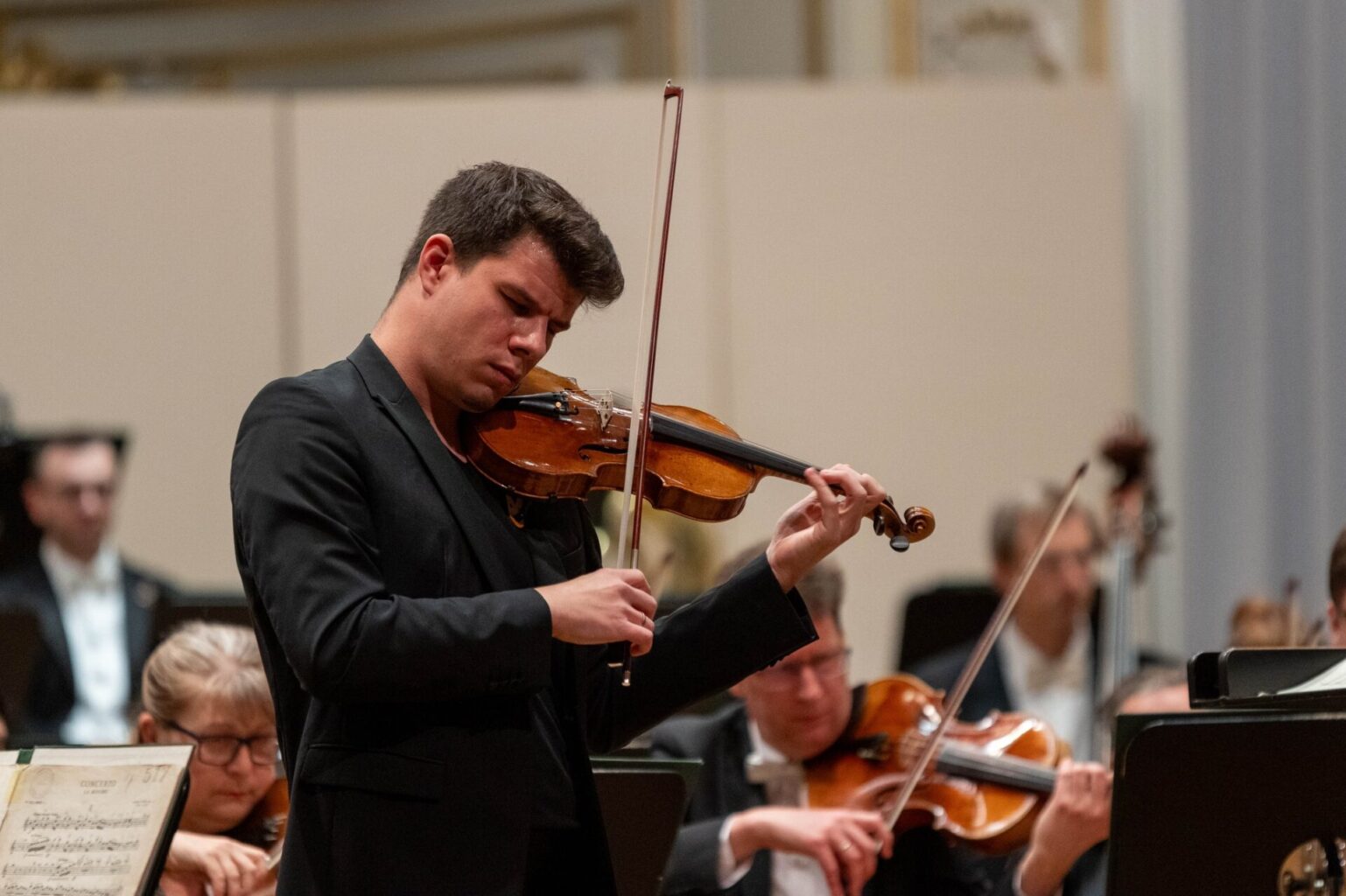 Mráček hrá Dvořákov husľový koncert od 15-tich rokov. Jeho hra bola zrelá, vyspelá, bolo zjavné, že ide o interpretačnú nadstavbu. Jeho frázovanie bolo mimoriadne citlivé, v sólach si dovolil pracovať s výrazom, tempami, dynamikou – jeho subjektívny vklad do tohto diela bol unikátny. Možno sa tak otrocky nedržal partitúry a práve jeho individualitu bolo cítiť na rôznych miestach, dokonca aj v technicky náročných dokázal prejaviť emócie – neboli to len vydrilované noty, čo sme počuli. Mať takéhoto hudobníka na javisku je vždy zážitok. Naplno totiž využil to, čo Dvořák ponúkol. Prvá časť je plná voľných rapsodických momentov, priam bolo cítiť, ako sa sólista s niektorými motívmi hrá. A najmä to bola jeho dobrá energia, ktorá fascinovala. Už dávno som v Slovenskej filharmónii nevidela hrať muzikanta so skutočnou radosťou a takou intenzívnou komunikáciou s orchestrálnymi hráčmi. Dokonca vlial prúd života aj do žíl našich hudobníkov, ktorí niekedy skĺzavajú do rutiny. Úchvatná bola jeho komunikácia so sólistami orchestra – Mráček partitúru dokonale pozná, pred znením sóla sa natočil k muzikantovi, nechýbal mu srdečný úsmev, dokonca niekedy očarujúce šibalstvo, aby vzápätí v dialógu spravil hudobne niečo nepredvídavé. Hudba je predsa živý organizmus a tento husľový virtuóz bol toho zhmotneným dôkazom. Jediná škoda, že v gradačných momentoch orchester tak trošku „prepískol“ dynamiku a balans nebol práve ideálny (sólista na niektorých miestach zanikal). Zato spomínané sólové časti a dialogické party priniesli presne tie vrúcne, lyrické momenty, ktoré od tohto autora očakávame. Mráčkov prístup k melodike bol čisto muzikantský, neviazaný, voľný, predviedol vyzreté dielo, ktoré akoby bolo jeho Bibliou.