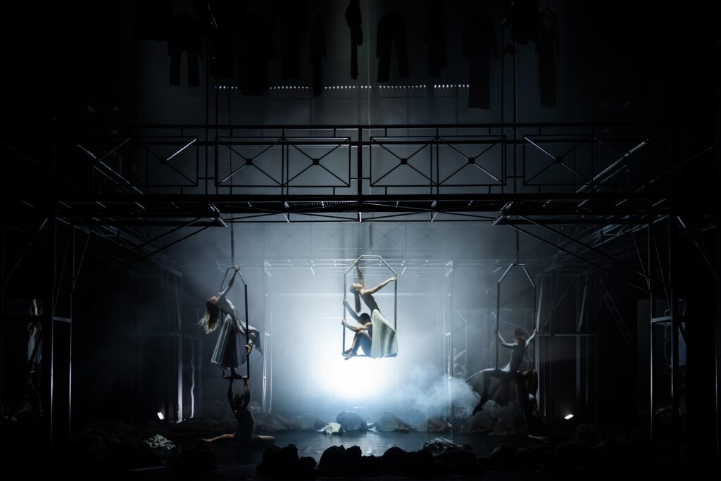 Potreba pomyselne kruh uzavrieť sa objavila opäť a pozrieť sa na tému z pohľadu dneška. Motív manipulácie je predstavený hneď v úvode, s dlhou introdukciou. Tá je však potrebná – je v duchu konceptu réžie, aby bol odkaz priehľadný a čitateľný. Tak, ako vo všetkých Šothových tanečných divadlách, aj v tomto prípade je dominantnou zložkou hudba. Je výrazná, výpovedná, režisér vyberá spočiatku popové songy, známe, rytmicky jasne štruktúrované a hoci sa spočiatku zdá, že tvoria kulisu, postupne význam hudby rastie. Phil Collins a koncertná verzia jeho piesne In the Air Tonight sa zvukovo vrství z jemnej zvukovosti bez bicích nástrojov až po výrazné gradácie, v ktorých počujeme jasajúci dav ľudí z koncertu. Zbory, ktoré postupne vchádzajú na scénu, sa roztancujú. Ako diváci im venujeme všetku pozornosť, no zároveň sa rozvíja ďalší plán. Viacplánovosť je charakteristickou črtou diel tohto tvorcu. Kovová konštrukcia na scéne vytvára po celý čas poschodie, na ktorom sú traja manipulátori v podaní excelentných tanečníkov – Františka Vargová, Igor Pashko a Mariano Covone. Smutne visiace kostýmy za nimi neveštia nič dobré, ich význam sa však dozvedáme neskôr. Zbory prispôsobujú svoj rytmus tanca manipulátorom, ich správanie je podriadené ich pokynom.