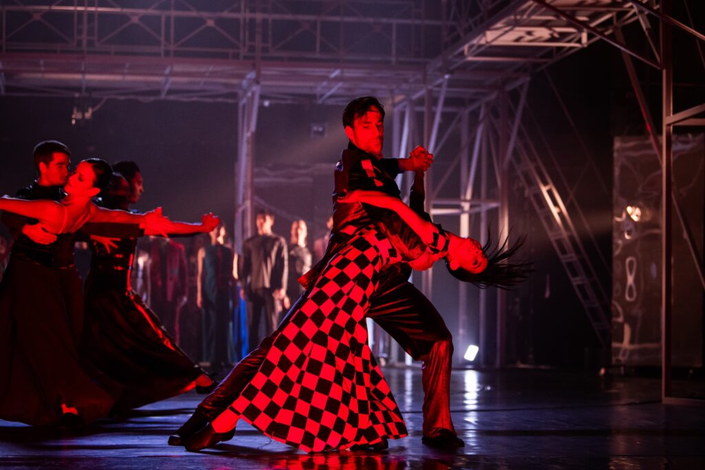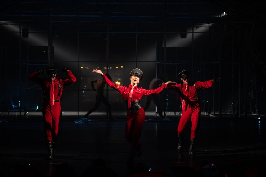 Každý jeden tanečník zborov presne vedel, kde je jeho miesto, aká je jeho úloha. V tomto je košický baletný súbor v obdivuhodnej kondícii a harmónii. Nikdy by sa tento výsledok nepodaril, ak by súbor nebol zomknutý, disciplinovaný a nemal túžbu prinášať divákom aj niečo iné ako tradíciu a akademickosť klasického baletu. Z uniformity diskotékových hitov nás vyrušilo tango – opäť manipulátormi nadiktované. Pozornosť diváka pritom periférne bola koncentrovaná aj na vrchnú časť scény na poschodí, odkiaľ táto trojica diktovala „rytmus“. Iná rytmika, na pohľad iný svet, no zároveň vždy nútiaci reakciu, ktorú od tanečníkov žiadajú manipulátori. Tanečne sa medzi nimi najviac vynímal Dalibor Fabián. Jeho držanie tela, sebaisté pohyby a precízny rytmus svedčili o tom, že v minulosti mal bohaté skúsenosti so spoločenskými tancami, ktoré dokázal zúročiť.