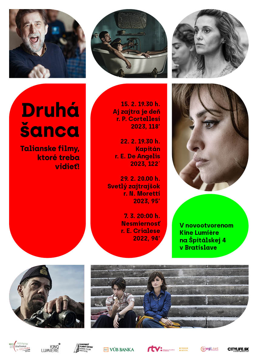 "Je pre nás cťou e veľkým potešením, že naša spolupráca s Kinom Lumière pokračuje. Znovuotvorenie tohto dôležitého kultúrneho stánku a miesta stretávania sa Bratislavčanov so sebou prináša prísľub nových, vzrušujúcich filmových dobrodružstiev," hovorí riaditeľka Talianskeho kultúrneho inštitútu v Bratislave Alessandra Sanniti a k dramaturgii prehliadky dodáva: „Vďaka filmovej mágii objavujeme krásu a silu ľudskej duše, odkrývajú sa pred nami príbehy zlomových okamihov, veľkých osobných i historických výziev s hlbokým posolstvom a ľudskosťou."