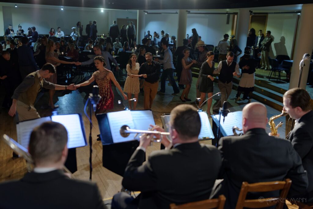 Počas večera budete mať jedinečnú príležitosť naučiť sa grátis základy tanečných krokov tanca charleston či lindy hop od lektorov tanečnej školy B-Swing.