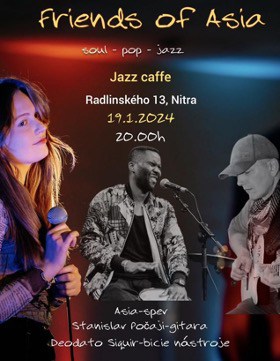 Pripravte sa na príjemný hudobný večer, keď Vám zoskupenie FRIENDS OF ASIA prinesie svoje melódie do Jazz Caffe Nitra 19. januára o 19.30h. Špeciálnym hosťom večera bude mozambický hudobník Deodato Siquir. FRIENDS OF ASIA, dvojica tvorená speváčkou Asiou Smolkovou a džezovým gitaristom Stanislavom...