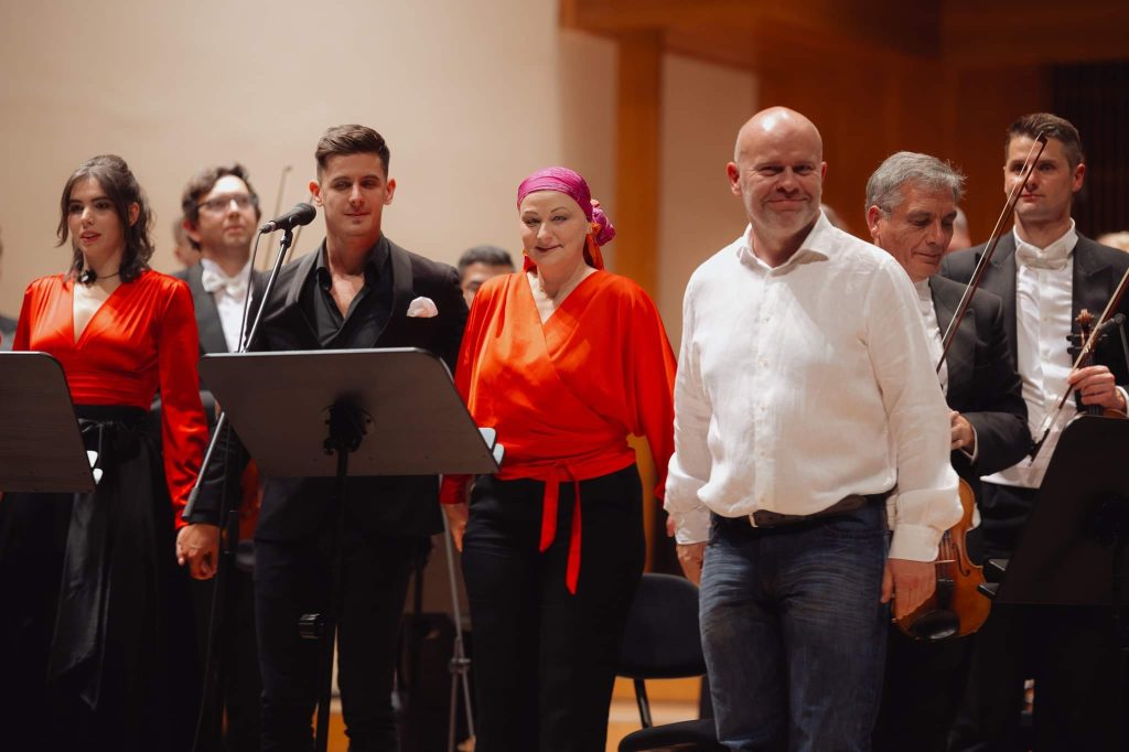 Napokon, aj v úvodnom slove organizátori poznamenali, že orchester, aj keď nerozumel básňam, zrazu verne vedel interpretovať hudbu. Hovorili o konkrétnom zážitku Tamása Cseha – básni Félig csókolt csók. Intimita hudby s úvodnými rozloženými akordmi syntezátora, so sólom spevu „Oheň napoly pobozkaného bozku. Žiari pred nami. Večer je chladný. Niekedy bežíme, bežíme s plačom.“ Atmosférou najsilnejšie boli piesne o láske a skladateľ pritom nemusel využiť celý orchester, naopak, vnútornú drámu a krásu dosiahol minimalistickými prostriedkami. Ten jeden motív, rytmicky výrazný, ste si hneď zapamätali, no dokázal s ním pracovať tak dômyselne, že vždy vás bavil. Vystupňoval ho a keď ste mali pocit, že už nemôžu prísť drásavejšie a nešťastnejšie slová o láske, spievané vokálom, objavil sa recitujúci umelec z Komárňanského divadla a basbarytónom ešte viac zaklincoval túto atmosféru. Celkovo 15 zhudobnených básní, v ktorých sa láska skloňovala v rôznych uhloch pohľadu, no vždy bola láskou. Hudobne a slovne bohatá, prekvapivá, nešťastná, krásna. Mne najbližšie jazzová – napríklad aj A mindegy átka, v ktorej sa ozval iba sólo klavír a spevák Tóth Károly. Jeho farba hlasu bola oprostená od operného či muzikálového veľkého hlasu, naopak, blížila sa k jazzovému scatovaniu. S tým, že na scat zneli slová básne. Úžasná ukážka toho, ako sa dá precítiť svet dvoch ľudí, ktorí práve vďaka láske dokážu ísť proti všetkému. Pentatonika v melodike orchestra znela v ďalšej Őrizem a szemed – zobrazenie poetiky tvorcu, pre ktorého bola láska bytostne dôležitá, no zároveň na ňu niekedy nazeral s pesimistickými víziami. Niekedy ste k jeho vnútornému svetu počuli lyrické sólo, kým jedna zo speváčok recitovala, inokedy sa ozývala v orchestri dráma, či intímne klavírne výlety do najviac skrytých zákutí ľudskej duše. Podstatné však je, že to nebol neosobný svet cudzích duší, ale každej jednej, ktorá v ten večer na koncerte bola.