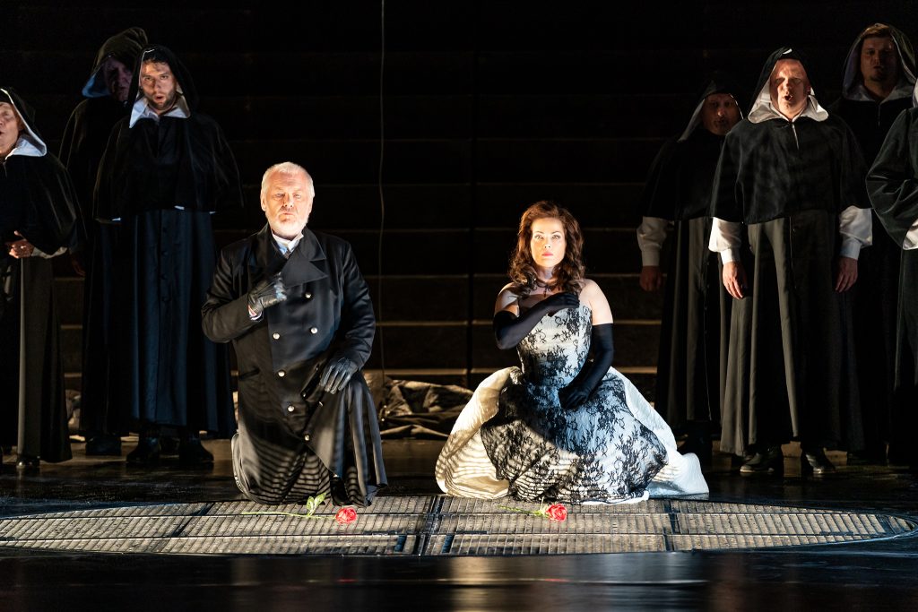 Inscenácia opery Don Carlo v réžii Diega de Brea je v histórii našej prvej scény piatou. Na zmysluplnej minimalistickej scéne sledujeme akoby súčasný príbeh o svete, v ktorom žijeme – o viere, vojne, láske, o slobode v rozhodovaní všeobecne i tej našej individuálnej. Režisér odhaľuje podstatu, nezaťažuje diváka balastom, rešpektuje hudbu a vzťahy. Dôležité je preňho aj svetlo, ktoré sugestívne dotvára atmosféru. A človek, spevák.