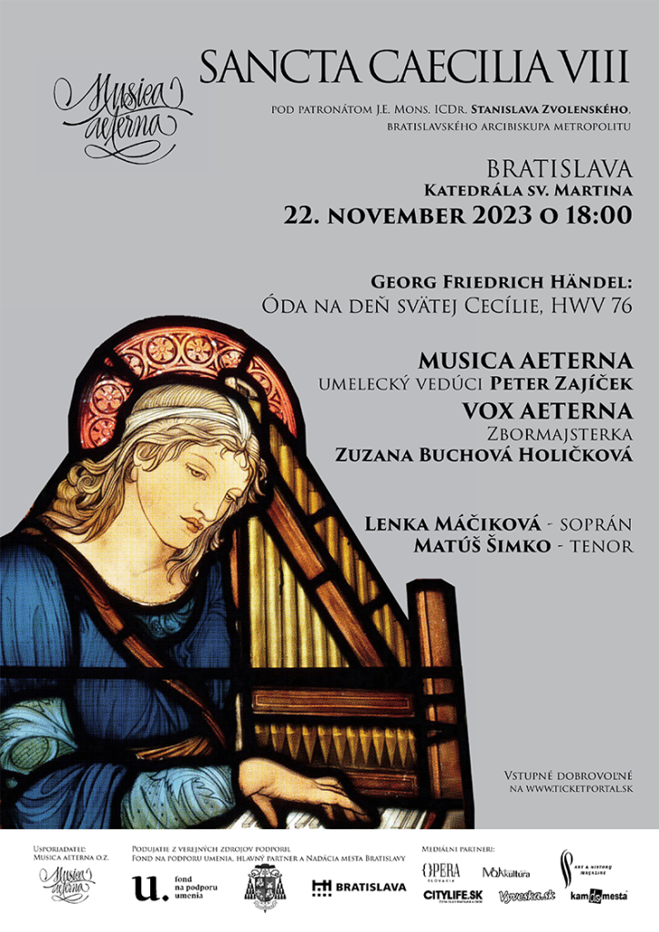 Oživovanie tradície vďakyvzdania patrónke hudby a hudobníkov sv. Cecílii súborom starej hudby Musica aeterna pod umeleckým vedením Petra Zajíčka, v tomto roku pokračuje pod názvom SANCTA CAECILIA VIII. Úvodným bude koncert v TRENČÍNE 19. novembra 2023, v priestoroch refektára Piaristického gymnázi...