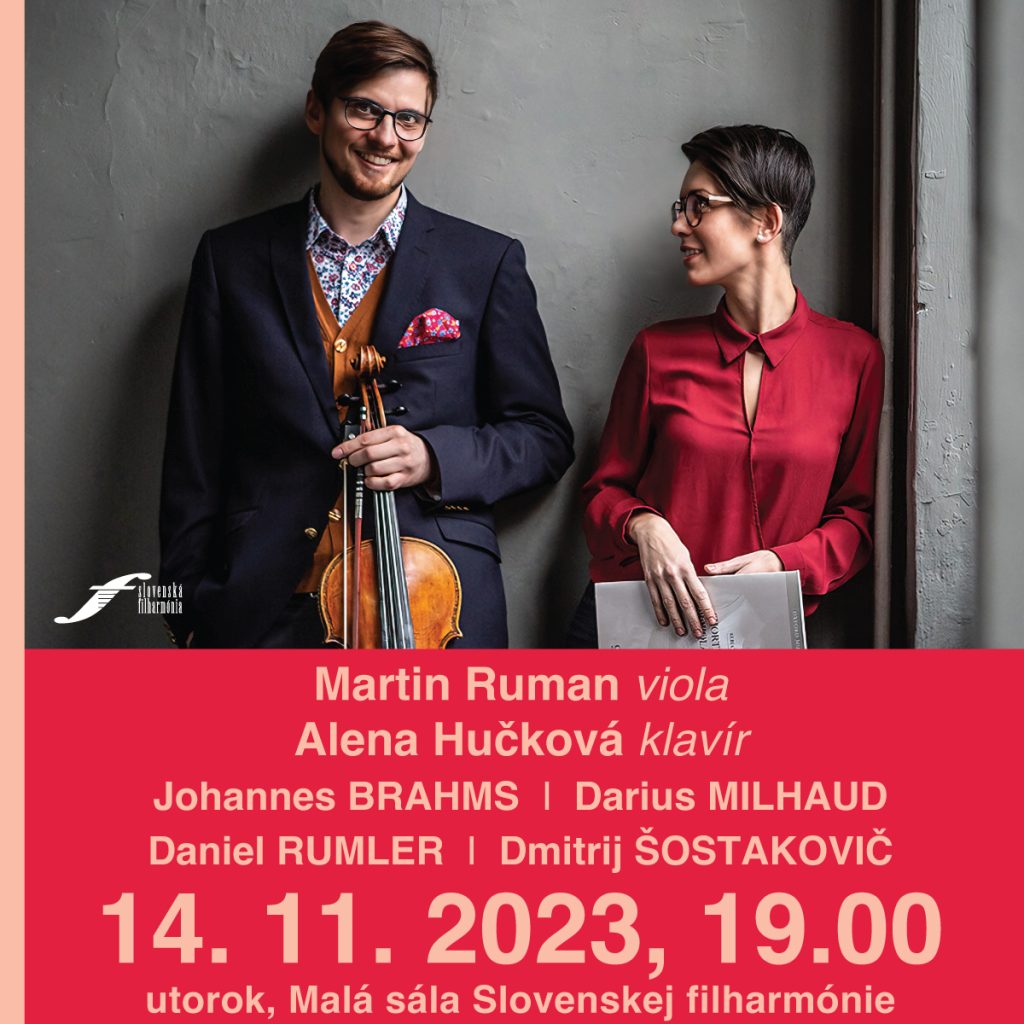 V utorok 14. novembra sa v Malej sále SF uskutoční druhý koncert cyklu Komorná hudba. Predstaví sa na ňom vedúci skupiny viol orchestra Slovenská filharmónia Martin Ruman, vynikajúci komorný hráč aj sólista. S klaviristkou Alenou Hučkovou tvoria stabilné komorné duo, ktoré vystupuje na Slovensku i v zahraničí. Do programu utorkového koncertu zaradili výber najzávažnejších diel z violového repertoáru. Violové sonáty Johannesa Brahmsa a Dmitrija Šostakoviča,Štyri tváre pre violu a klavírDariusa Milhauda a v premiére zaznie Ciaccona Daniela Rumlera. Koncert sa začne o 19.00.