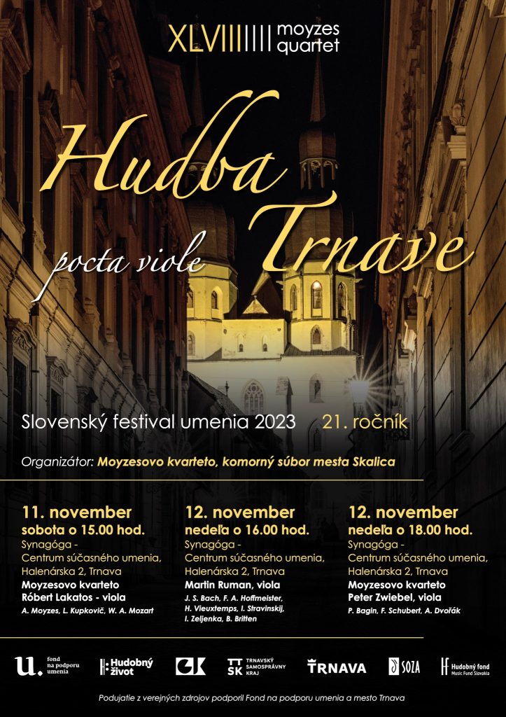 Dvadsiaty prvý ročník festivalu Hudba Trnave sa uskutoční počas víkendu 11. a 12. novembra 2023 a celý bude poctou viole. Podujatie, ktorého organizátorom je Moyzesovo kvarteto, je každoročne venované jednému hudobnému nástroju. Uskutoční sa tradične v priestoroch Galérie Jána Koniarka (GJK), v Syn...