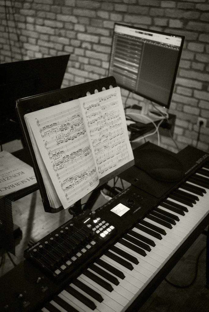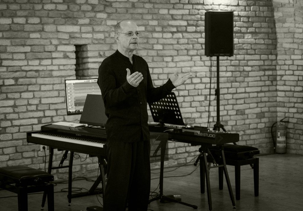 Klavirista teda nahral všetky nástroje z partitúry a naživo svoj part interpretoval do orchestrálneho podkladu na syntezátore. Iste, tieto priestory by si rozhodne zaslúžili dôstojné koncertné krídlo, no zatiaľ si museli vystačiť v tomto prevedení. Aj keď treba poznamenať, že zvuk syntezátorov bol pekný, príjemne sa približujúci akustickému nástroju, napokon, je to muzikant, ktorý má vkus a sluch, určite by nepriniesol na koncert nástroj, ktorý by sa okato vzďaľoval podstate klavíra a jeho krásneho tónu. Aj tak to však bol malý zázrak, lebo počuť tieto diela – orchestrálnu hudbu, v priestoroch, kde by sa orchester so sólistom ani teoreticky nedostali, bolo jedinečné. Všetky naprogramované party sme videli zreteľne na monitore počítača – vyzeralo to niečo ako spektrálna analýza zvukov, no práve tento vizuálny kontakt s prebiehajúcou orchestrálnou hudbou, ktorá znela z reproduktorov, nahradil aspoň čiastočne absenciu orchestra. Takže boli to živí, reáli muzikanti, ktorých hudba bola nahraná – prostredníctvom predstáv sólistu, ktorý tieto naprogramované party sprevádzal naživo.