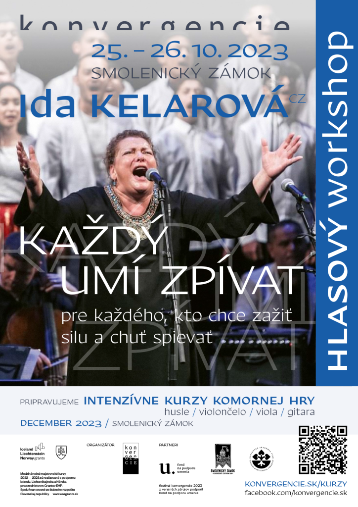 Jedinečný hlasový workshop Idy Kelarovej Každý umí spívat“ pre široké publikum – neskúsených a hanblivých, ale i spevákov-profesionálov sa uskutoční od 25. – 26. októbra 2023 na Zámku Smolenice. Prihlasovanie je otvorené už len do 8. 10. 2023, počet miest je limitovaný. Podujatie sa koná pod hlavi...
