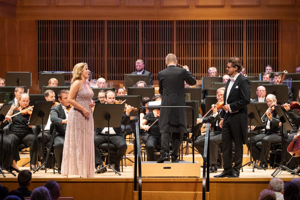 V prvom dejstve sa po predohre predstavila v duete česká sopranistka Kateřina Kněžíková, ktorá je na úlohu Rusalky priam stvorená. S ľahkosťou spievala výšky, jej lyrický soprán má krásnu farbu, jej výšky boli mäkké, spievala s uvoľnenosťou, bez tlaku dokázala znieť vo všetkých polohách dostatočne objemne. Priam dojemný bol jej vstup v jednej z najznámejších árií Měsíčku na nebi hlubokém. Jej precítené piána, krásne vyspievané, plynulé legáta s dôležitými ritardandami vo frázach, plynulé, bezchybné skoky – striedanie polôh, lyrika, neha a romantika, no s tušiacou tragédiou, ktorú pripomína hudba, boli neopakovateľným posluchovým zážitkom. Riziko tejto árie je veľké – je to známy kus, doslova hit, preto každé jedno zaváhanie počujete. Kněžíková však bola sebaistá, jej precítený prejav bol podporený orchestrom – citlivá taktovka Roberta Jindru vytvorila so spevom dobre fungujúci živý organizmus. Harfové arpeggiá dokázali v publiku, aj bez scénického prevedenia vyvolať obraz mesačného svetla, ktoré sa trbliece na vodnej hladine. Ak teda nie je opera uvedená ako inscenácia, práve sugestívny prejav v hudbe a speve, dokázal túto zložku suplovať. Táto ária je pokojná, prekrásna melódia, s tušeným napätím vo vnútri, no vždy musí prevážiť vyjadrenie lásky – vysoké tóny z domova Rusalky smerujú k mesiacu ako vyznaniu a zároveň je to prosba hlavnej hrdinky, aby sa dozvedela, kde je jej milovaný princ. Všetky tieto emócie česká sopranistka v árii bravúrne stvárnila. Aj keď predpísané pianissimá miestami prezentovala dramatickejšie, práve pri koncertnej verzii bol tento vokálny, expresívnejší prejav vhodný.