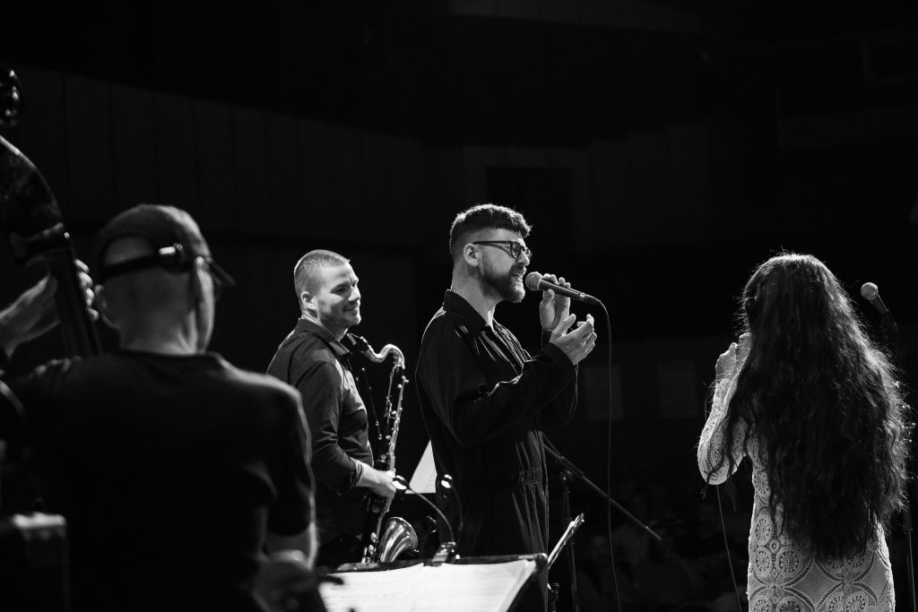 Večer otvoril Samuel Hošek s projektom Peace. Čestne priznávam, koncert tohto mladého speváka som mala možnosť počuť po prvýkrát, aj keď jeho meno je dnes pomerne často skloňované (ó áno, ušli mi aj jeho albumy a všetko to mediálne dianie okolo jeho osoby). Spevák, performer a výtvarník už má na konte debutový album Our Time Is Now z roku 2020, ktorý vydal v spolupráci s hudobným producentom Jurešom Líškom. Na druhom albume Peace sa však odklonil od predchádzajúceho smerovania a vrátil sa k jazzu. Spravil zjavne dobrý krok. Jeho farba, objem a spôsob, akým vie pracovať s hlasom, ho priam predurčuje na prácu s melodikou, scatovanie, na pridanie jazzovej esencie a špecifickej rytmiky vo frázovaní skladieb, ktoré sa na pohľad môžu javiť ako štandardné balady. Spôsob ich uchopenia a spracovania je však iný. Ponúka zvukovú pestrosť, moderné prvky v aranžmánoch, zmes všetkého, čo len v súčasných prístupoch jednotlivých inštrumentalistov môžete nájsť – aj tým sa zrazu spev nedostáva na prehnane dominantnú úroveň, ale tvorí vyváženú zložku sonórne bohatého sveta skladieb druhého albumu.