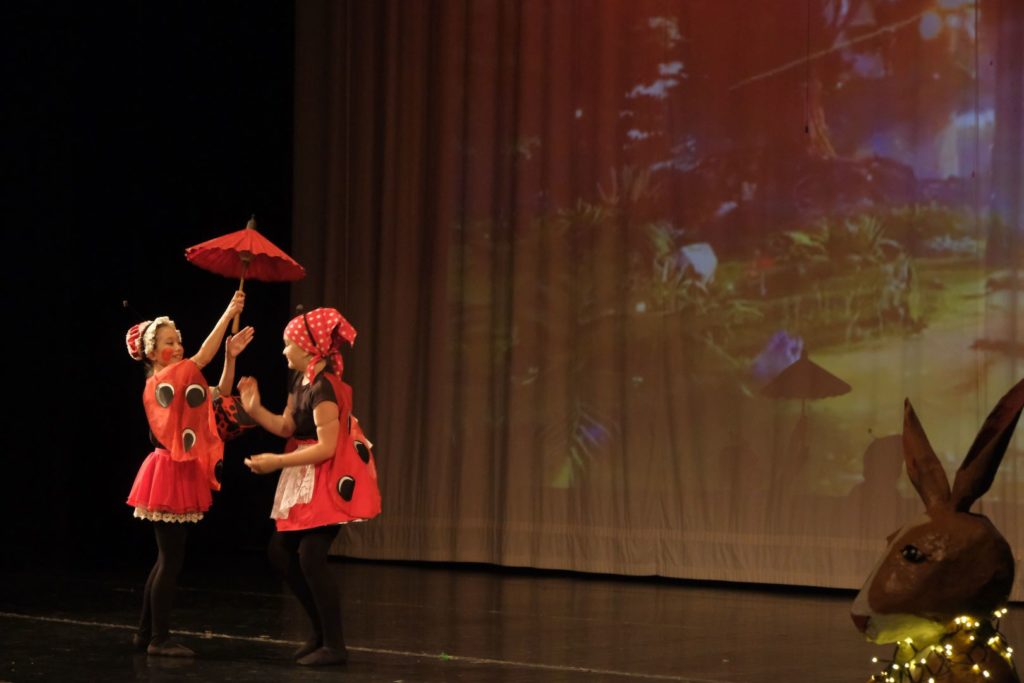 Niektoré žiačky stvárnili aj Stromy - L. Šťastná, L. Zatlakovičová, 3. r. a Svätojánske mušky: K. Sočuvková, S. Grekszová, A. L. Čajková, S. Záhorová, 3.r. Pôsobivý a veselý bol spoločný tanec, v ktorom ste ihneď rozpoznali Lienky: S. Matkovská, A. M. Laurinecová 5. r. Predstavili sa aj ďalší zástupcovia ríše zvierat: Zajkovia - J. Gašparíková 3. r., E. Viljoen 4.r., Škriatok: L. Matkovský 4.r. a Pavúk: P. T. Gumbír 4.r.