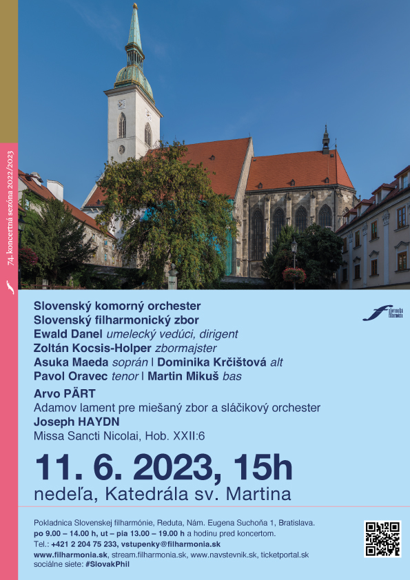 Záverečný koncert cyklu Hudba v chrámoch sa uskutoční už túto nedeľu 11. 6. 2023 v Katedrále sv. Martina. So Slovenským komorným orchestrom vystúpi aj Slovenský filharmonický zbor (zbormajster Zoltán Kocsis-Holper) a kvarteto vokálnych sólistov, členov našej zborovej jednotky - Asuka Maeda soprán,...