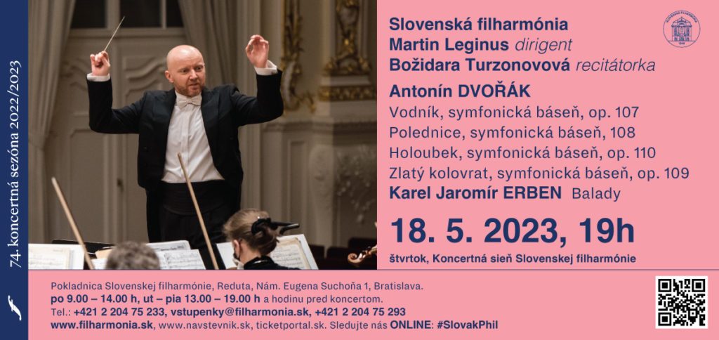 Slovenská filharmónia sa na šiestom záverečnom koncerte Populárneho cyklu predstaví pod taktovkou slovenského dirigenta Martina Leginusa. V jeho naštudovaní zaznejú v Koncertnej sieni Slovenskej filharmónie štyri symfonické básne Antonína Dvořáka – Zlatý kolovrat op. 109, Polednice op. 108, Holoube...